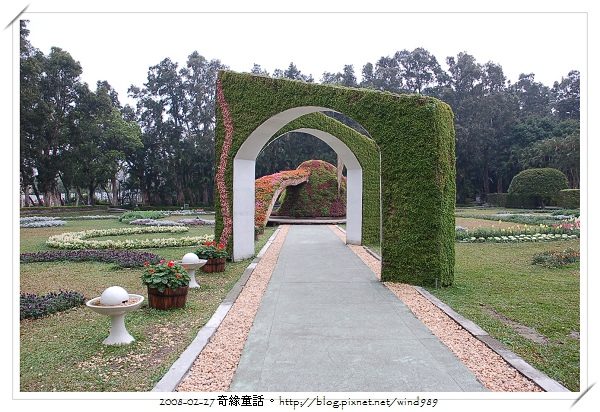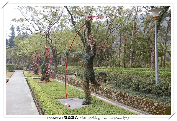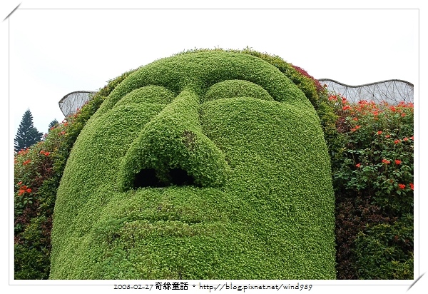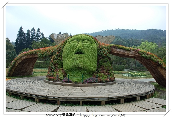 士林官邸除了定期的花卉展外,在公園內也佈置許多裝置的花卉藝術,其中最引人注目的就是在翠綠草坪上的『巨人像』,所有來訪的各國觀光客必定留影的一景,感覺變成士林官邸的新地標,難怪從2007菊花展出後仍保留在原地。