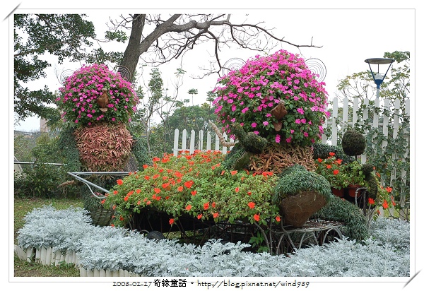 用花拼出的老鼠推車動作相當逗趣,其中前面那隻伸出大拇指比「讚」的動作是最多在此與他合照人的姿勢,下次遇到它也別忘了擺一下。