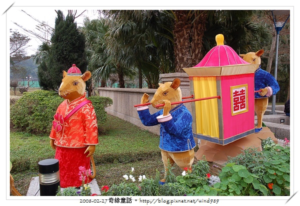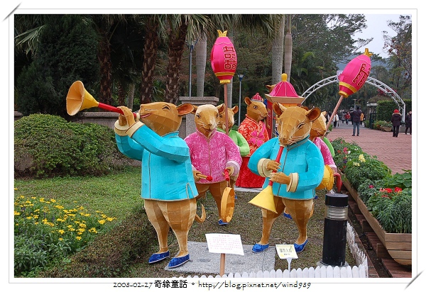 欣賞完抽象感十足的花卉老鼠,瞧瞧這組立在士林官邸門口的花燈造型,相信大家在剛過鼠年元宵的此時,應該很快地發現它的主題。