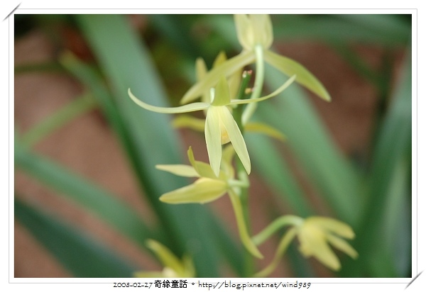 奇緣很喜歡這株帶著淡淡翠綠的蘭花,比起其他的蘭花種類花朵算是相當嬌小,薄如羽翼的花瓣,卻擁有脆竹般的清新氣息。