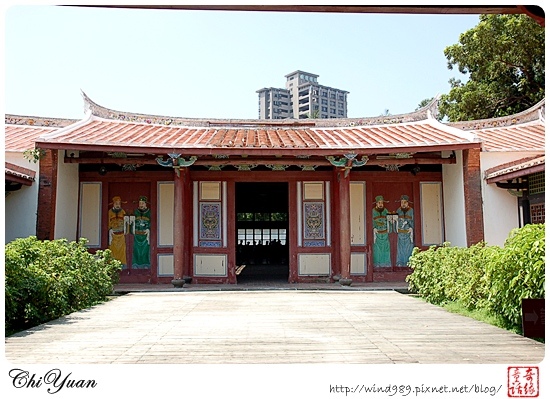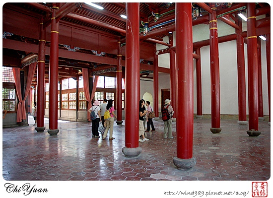 其格局是「田」字形配置,是一座七開間三進式的建築,上面照片第一張是最外面的「頭門」,為主要出入門戶;第二張為過頭門所見到的「儀門」,是所有訪客在此下轎,整理儀容,準備入內的地方。