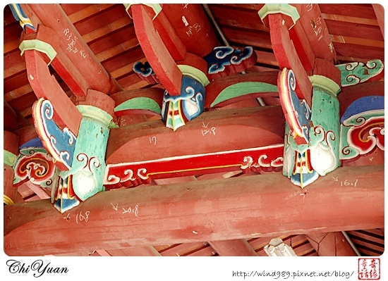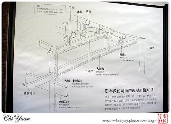 所以目前看到的布政使司衙門正值努力修復的過程,在「頭門」上方的樑柱、斗拱仍是帶有維修時的編號。