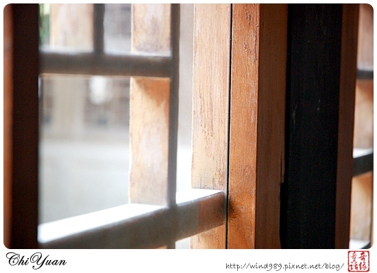 廂房旁的窗戶仍是木製窗,但為了保從古蹟,已在外面加上一層玻璃,所以現在是可透光,但無法吹風。