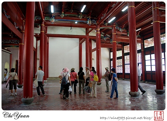 從頭門進入後,沿著左廂房往後方的大堂走去,沿途的室內空間展示著布政使司衙門的歷史沿革、建築特色與相關資訊。