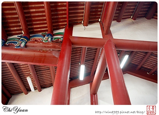 在我們參觀的途中,當地的解說員特別提醒我們不要觸摸到柱子,參觀完也要記得清洗雙手,因為柱子上面一個個洞,是為木造柱子打進防蟲的藥劑。