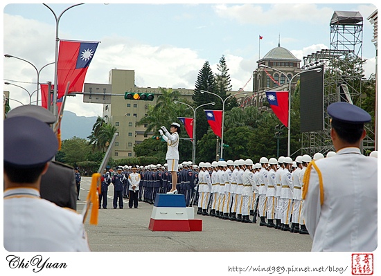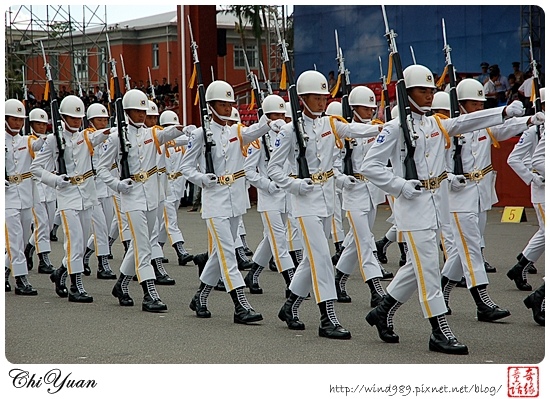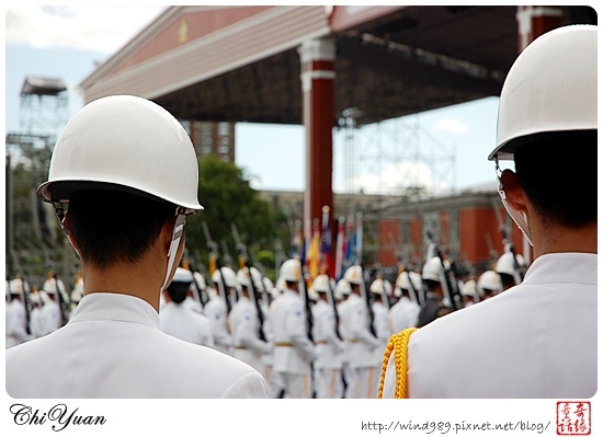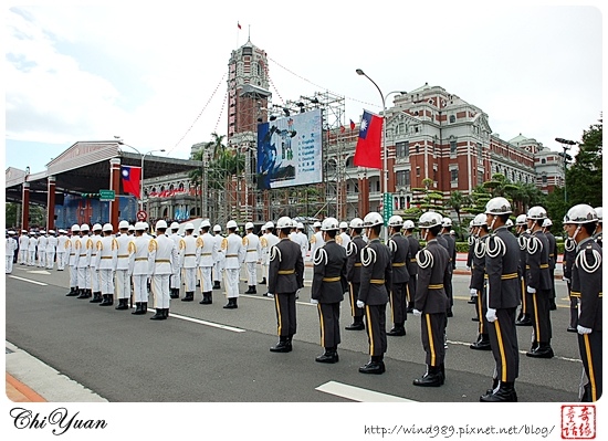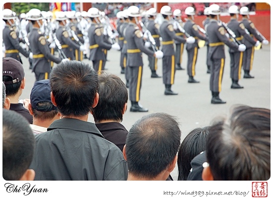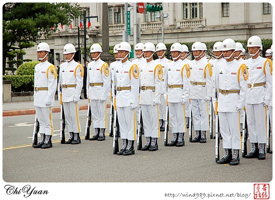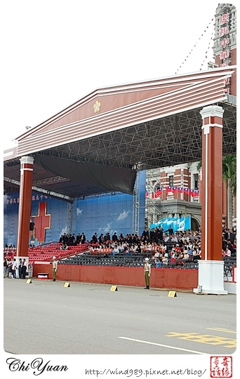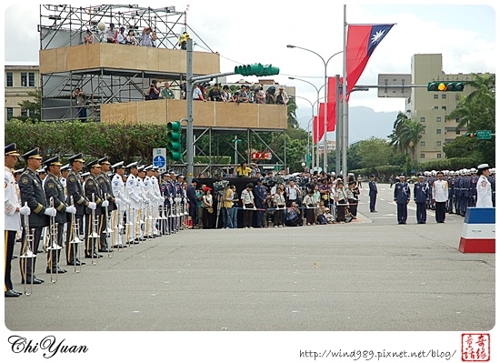 既然趕不上第一個節目,就放慢腳步打量眼前肅穆的三軍儀隊,他們是唯一在等待時間從頭到尾沒有離開自己崗位,兩眼直視前方,一動也不動的隊伍。