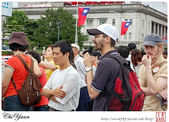 三軍儀隊正在前進,奇緣也在尋找位子的路上前進著。發現除了不少本地人來觀賞,外國媒體也夾雜在人群中,手上還拿著一個麥克風喃喃自語,應該在述說著現場預演的狀況。