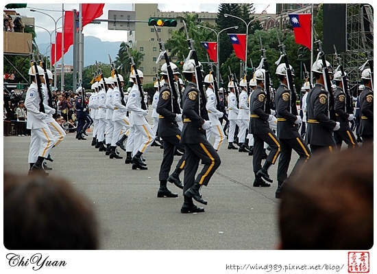 欣賞完默契十足且精神抖擻的三軍儀隊操槍表演,整個人精神都來了,因為熱鬧的表演節目緊接就要展開,已經等候多時的表演隊伍,終於開始向總統府移動。
