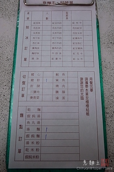 「意麵王」是五十年老店,目前傳到第三代,用餐空間不大,卻乾淨明亮,沒有五十年的陳舊。有制度的服務人員,一切感覺井然有序。