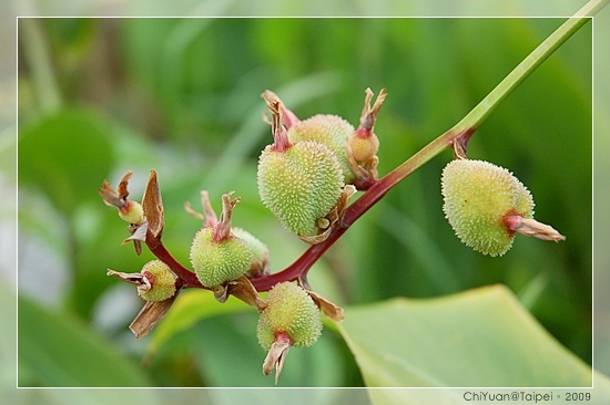 當花謝後不久,有綠色帶軟刺的蒴果長出,裡面蘊含美人蕉的黑色種子。嬌嫩的花與尖銳的蒴果,是一種反差的呈現,也多認識了美人蕉這種美艷的植物。