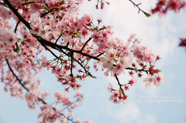 此時,接近2011陽明山花季(2/18~3/20)的尾聲,主角從緋紅耀眼的山櫻花,換成粉嫩淡雅的吉野櫻。盛花處也從陽明山花鐘轉移到遊客中心前方。