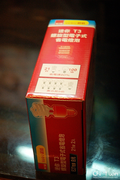 仔細一看,會發現奇緣只裝上兩顆燈泡,因奇緣這次從特力屋一起購入的省電燈泡,亮度相當夠。21W的省電燈泡有100W燈泡的亮度,讓玄關處變得明亮清楚,而且使用的壽命又有一般燈泡的八倍長。