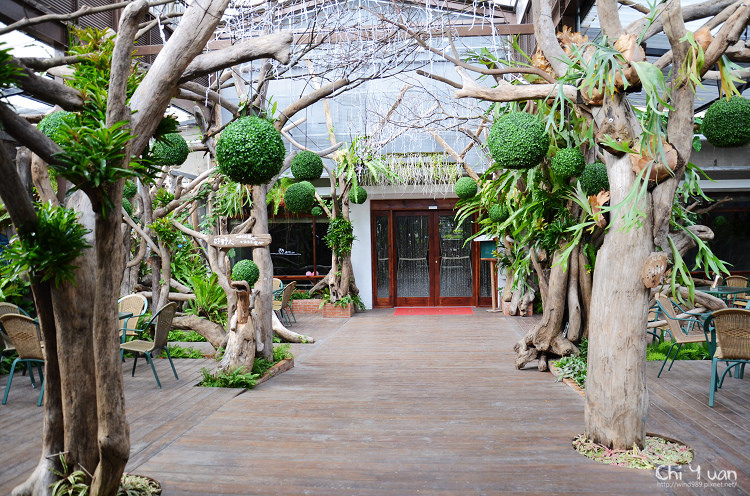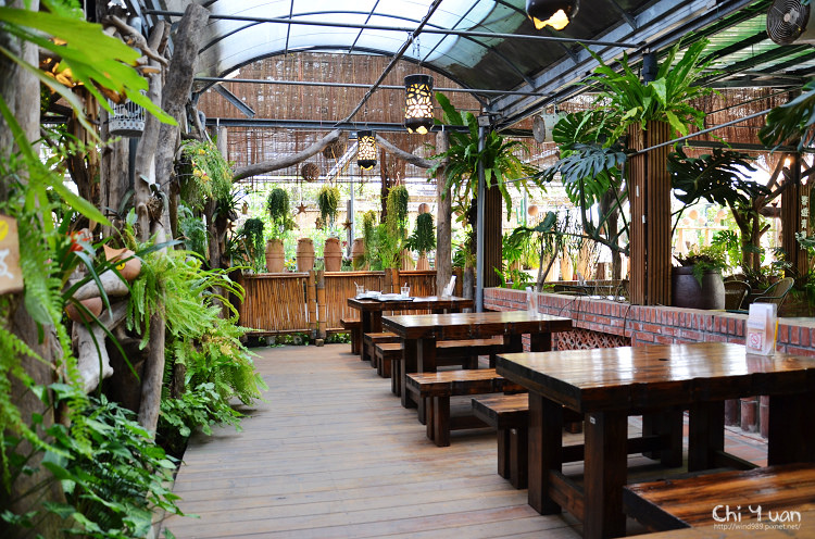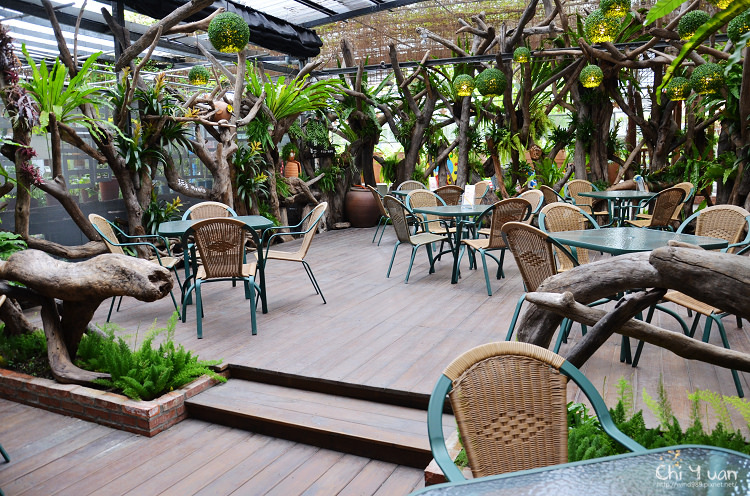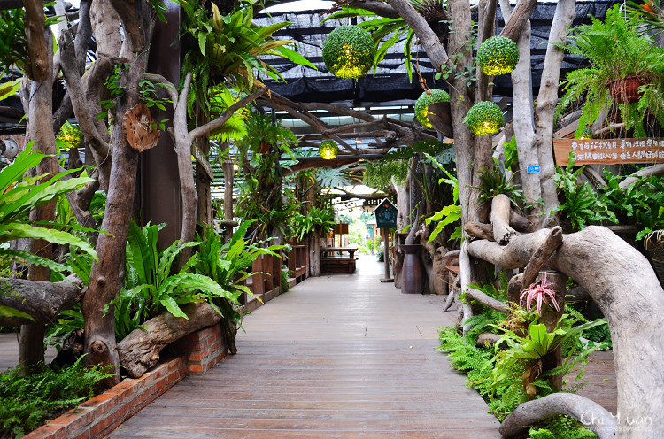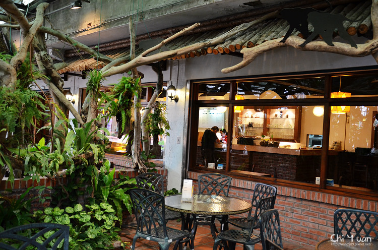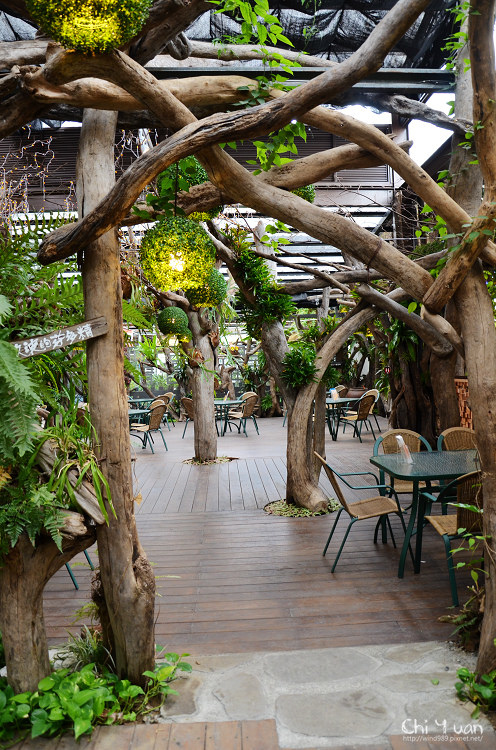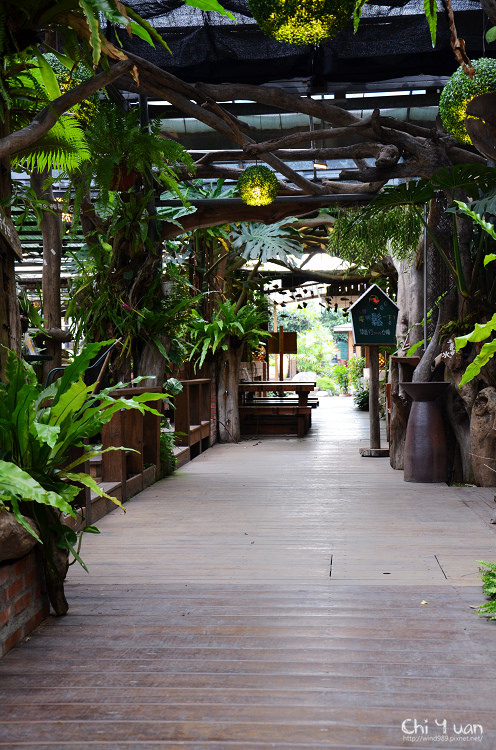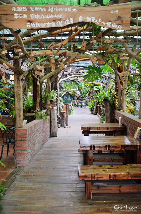 眼前展開的廊道,阻隔塵世的喧騰。一個難忘的平日午後,卻享有一整片的幻想森林。台北花卉村內的「森林派對咖啡館」,有紅磚古味的室內座位,更迷人的地方是沿著長廊展開的戶外座位區。