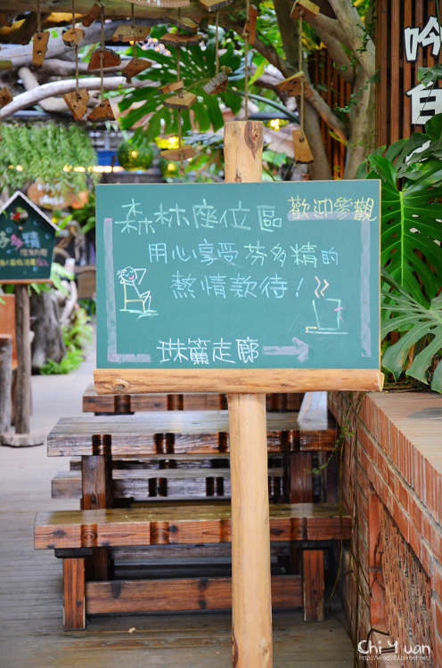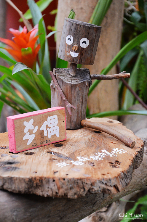 各式各樣的漂流木組合的造型成了森林派對咖啡館的特色風景,而趣味的字句,隨著原木與香味,散布在整個空間中。讓人可以悠閒地享受輕食,也不禁隨著一句句的話語,逛遍每個角落。