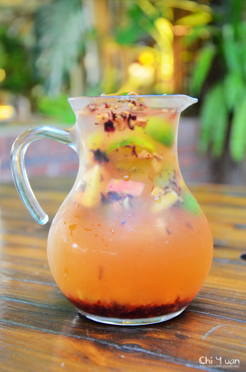 一大壺的花香鮮果茶,微冰的沁涼讓暑氣消散。花茶的香氣與繽紛水果的入甜,第一口的豐富酸甜,有著清新的滋味。這一壺適合在新鮮的時刻品嚐,因為久放的微澀不比先前的美好。