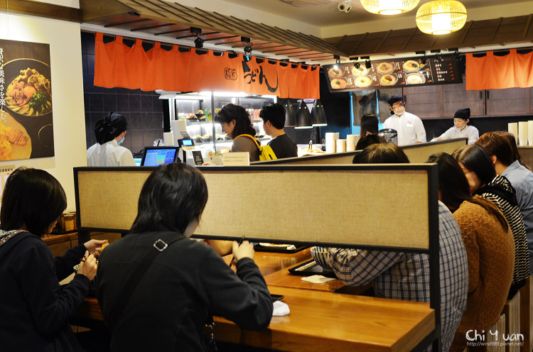 採半自助式的點餐方式,相當有日本的風格。從入口處開始排隊,在每個窗口前依序點餐,最後在找位子入坐,而用餐完畢也需自己收取餐盤。